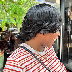 Experience the transformative power of our 'Silk Press' service. Designed for all hair types, this service uses a combination of heat and high-quality products to straighten your hair, creating a smooth, lustrous finish that looks and feels luxurious. The process begins with a thorough cleanse and deep conditioning treatment, preparing your hair for the silk press. Using a professional-grade flat iron, your hair is straightened strand by strand, resulting in a silky-smooth finish that retains its natural body and movement. The 'Silk Press' service is more than just straightening your hair; it's about revealing a glossy, sleek, and stunning look that highlights your natural beauty. Step into my chair, and let's unlock a new level of elegance and sophistication with the 'Silk Press'.